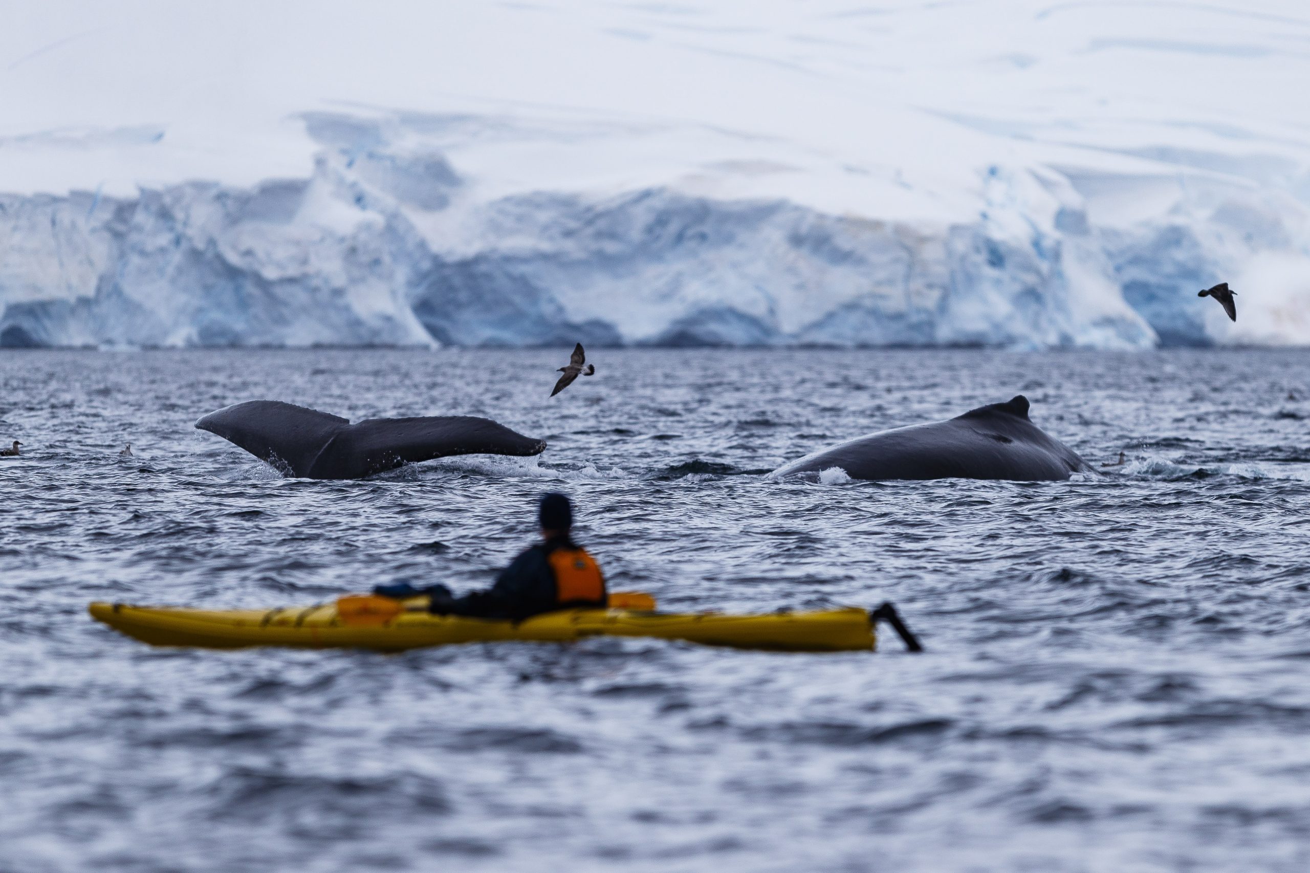 In addition to the Zodiac and paddling excursions, we plan to spend a lot of time on the outer decks and other vantage points on the ship to spot—and photograph—wildlife. We’ll spend our days in key marine mammal habitats of the Gerlache Strait and remote inner glacial bays. Over the next three days, we aim to explore whale hotspots such as Charlotte Bay, Portal Point, Graham Passage, Errera Channel, Cuverville Island, Andvord Bay, Fournier Bay and Dallmann Bay. Past whale sightings in these areas have included minke, humpback, fin, orca and the elusive, deep-diving Arnoux’s beaked whale.
