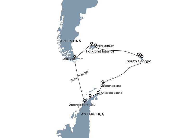 On this extraordinary 18-day voyage, explore the fascinating Falkland Islands and mind-blowing South Georgia before heading to the South Shetlands Islands and the Antarctic peninsula. All the highlights of the Southern Ocean in one voyage!