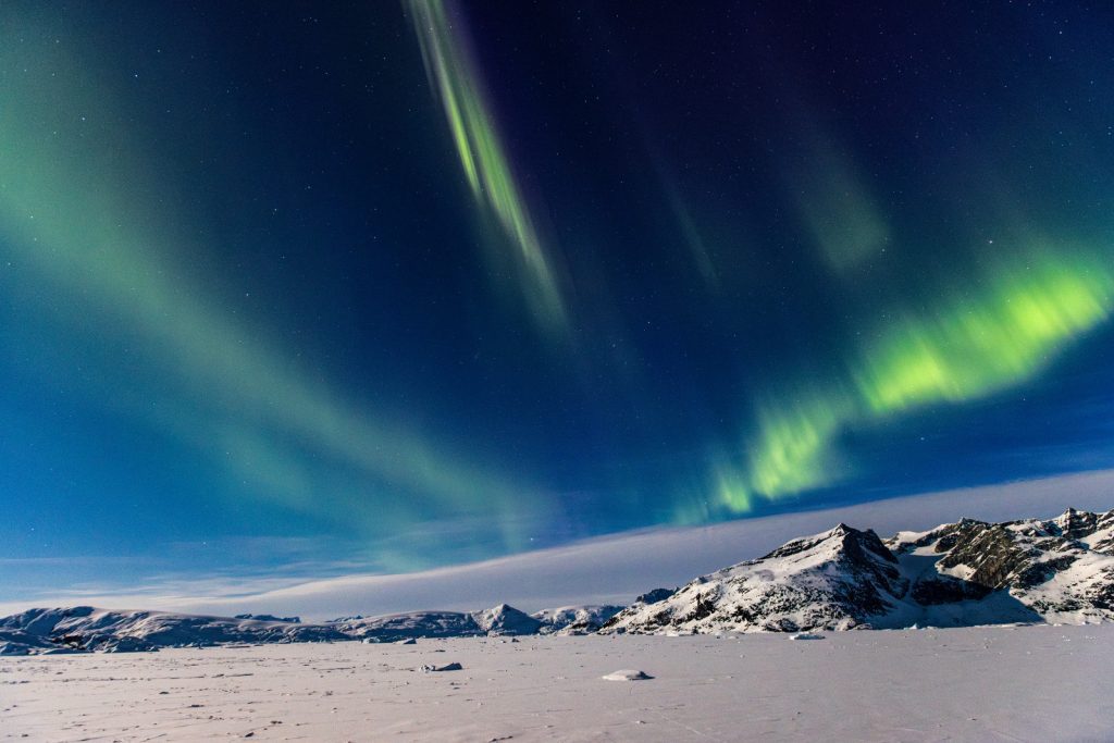 On the East coast of Greenland, in the Ittoqqortoormiit region, you will have the rare opportunity of immersing yourself in the heart of isolated scenery and exploring the beauty of its landscapes. The high alpine mountains stand out in the sky, revealing dark rock edges. The region is home to the longest fjord system in the world, Scoresby Sound. On the edge of the fjord, the eponymous village is considered one of the most remote inhabited places in the world. The colourful houses, so typical of Greenland, dot the landscape with small red, yellow and blue patches that stand out against the surrounding arid landscape. Immersing yourself in this region will allow you to discover the ancestral way of life of the last hunters of the polar region. This will be a veritable deep-dive into the lives of the Arctic’s inhabitants.